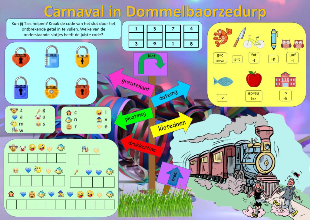 Een leuke bureaulegger voor groep 5-6. Met een emojipuzzel en een wegwijzerbord.. maar waar naartoe??